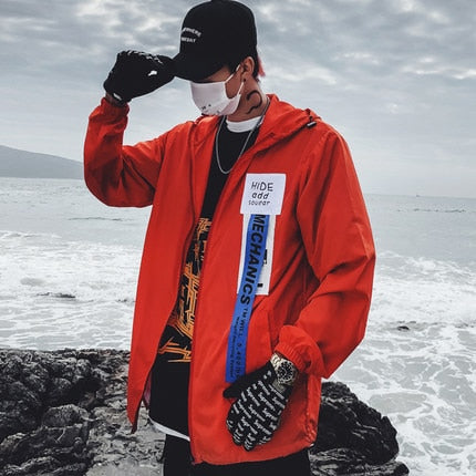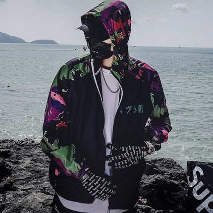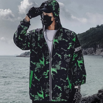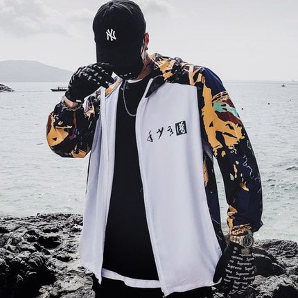 Dragon Bomber Jacket Men Outwear Streetwear Hip Hop Baseball Jacket Hooded Thin Windbreaker Jackets Fashion Patchwork Clothes