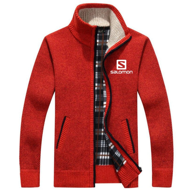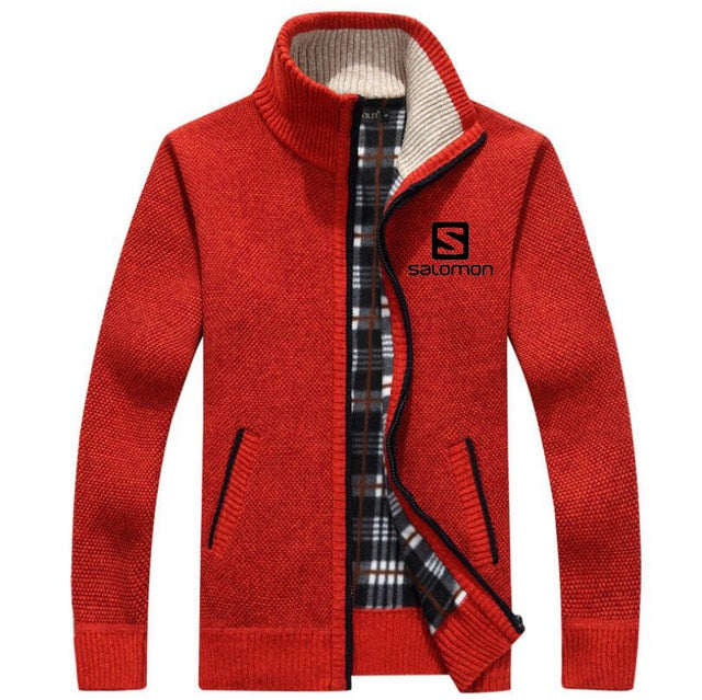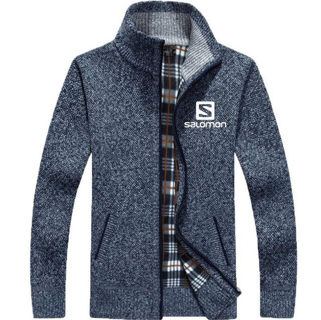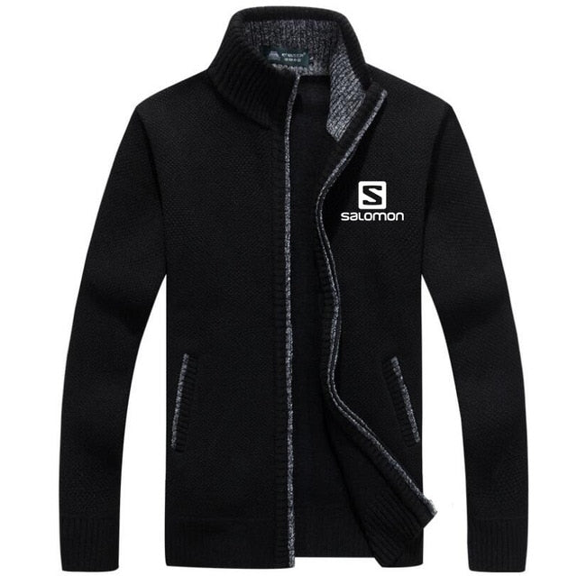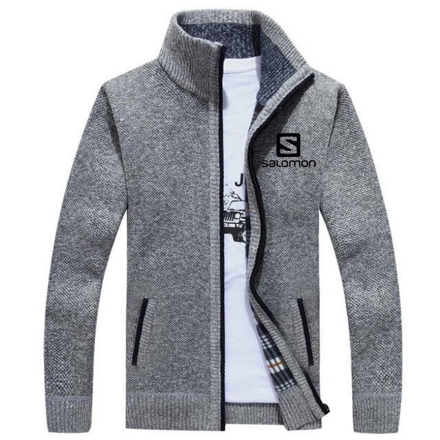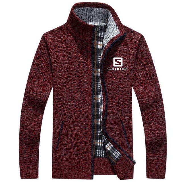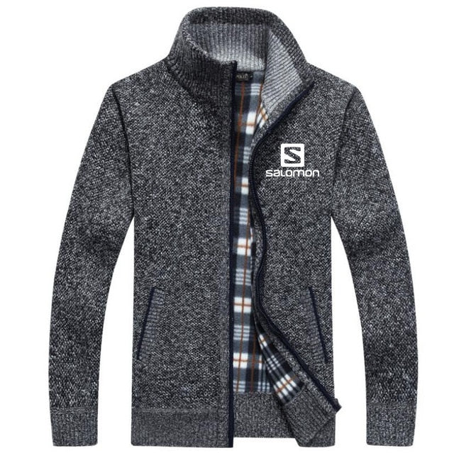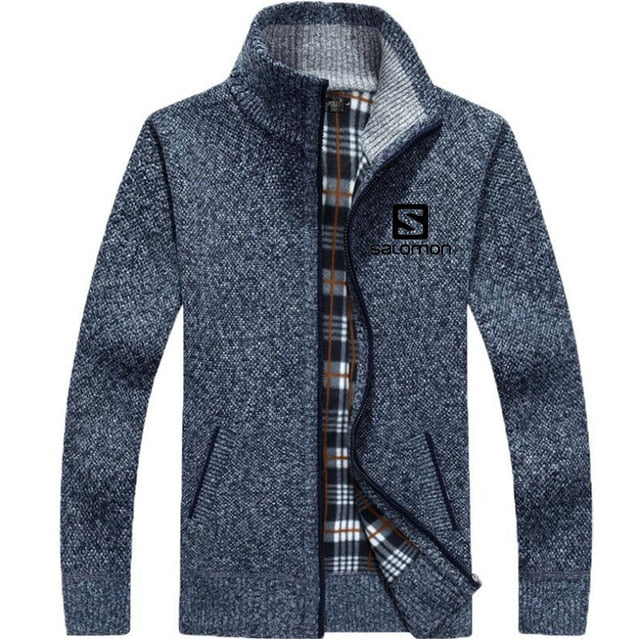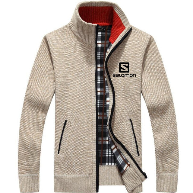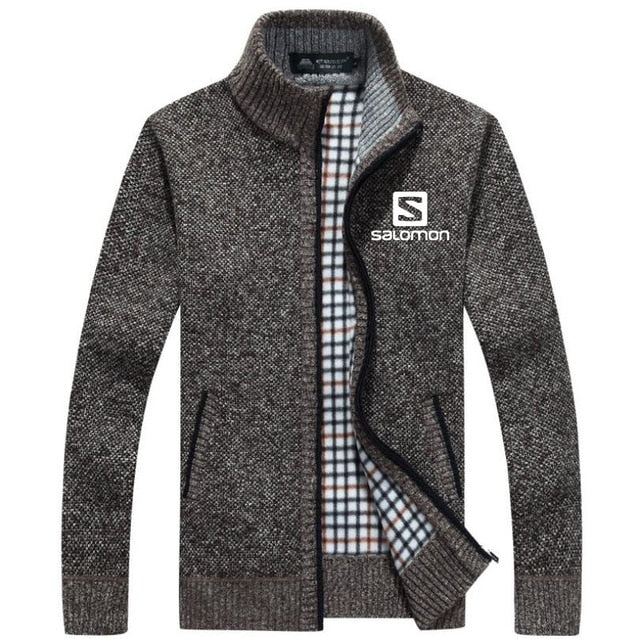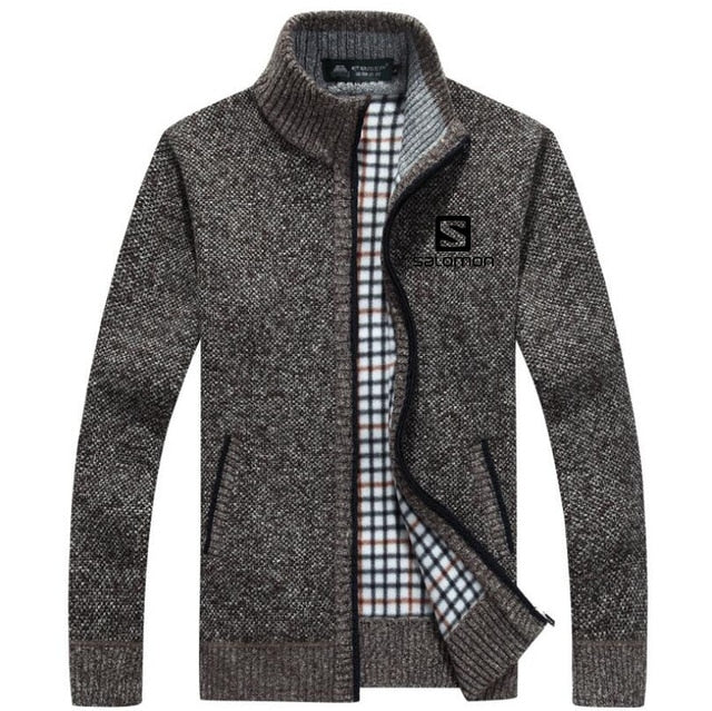New Sweater Jacket Men Salomon Autumn Winter Coats Male Thick Faux Fur Wool Mens Sweater Jackets Casual Zipper Knitwear Coats F