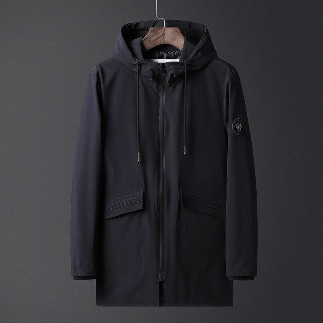 Plus 8XL  7XL 6XL Spring Autumn New Slim Fit Young Men Hooded Jacket Thin Jackets Brand Casual Windbreaker Top Quality black