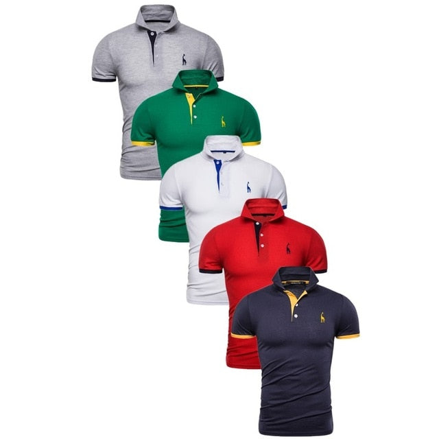 Dropshipping 5 Sets Polo Giraffe Shirt Men Brand Quality Cotton Deer Embroidery Polos Men Fashion Slim Fit Mens Polo BR Size
