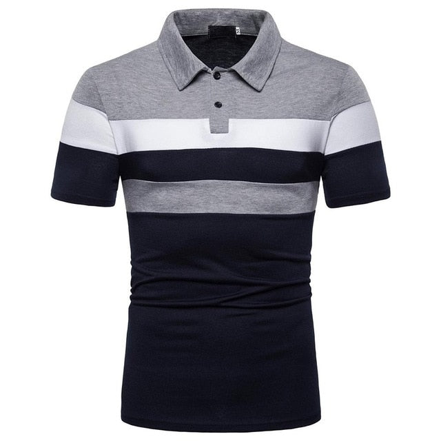 Men Summer Fashion Short Sleeve Shirt Pathwork Casual Sport Top Blouse embroidery breathable cotton Stitching polo shirt