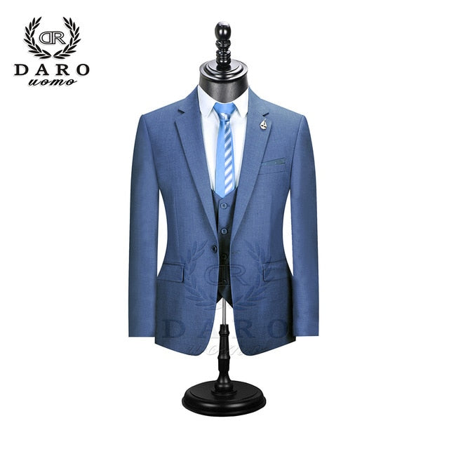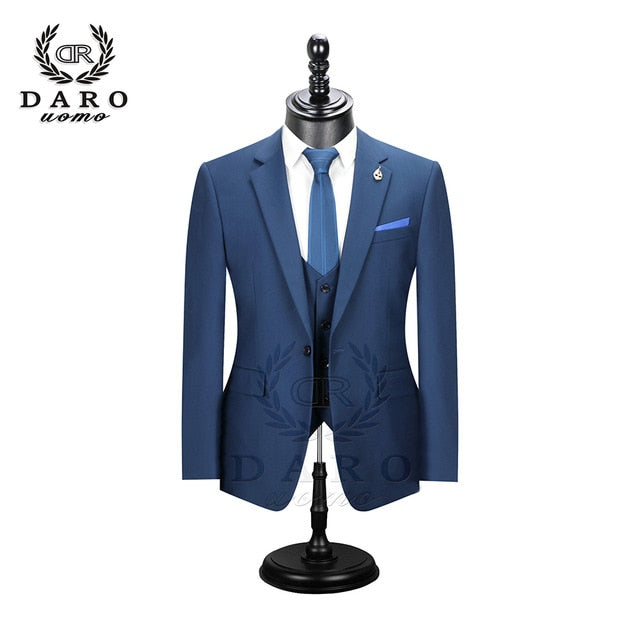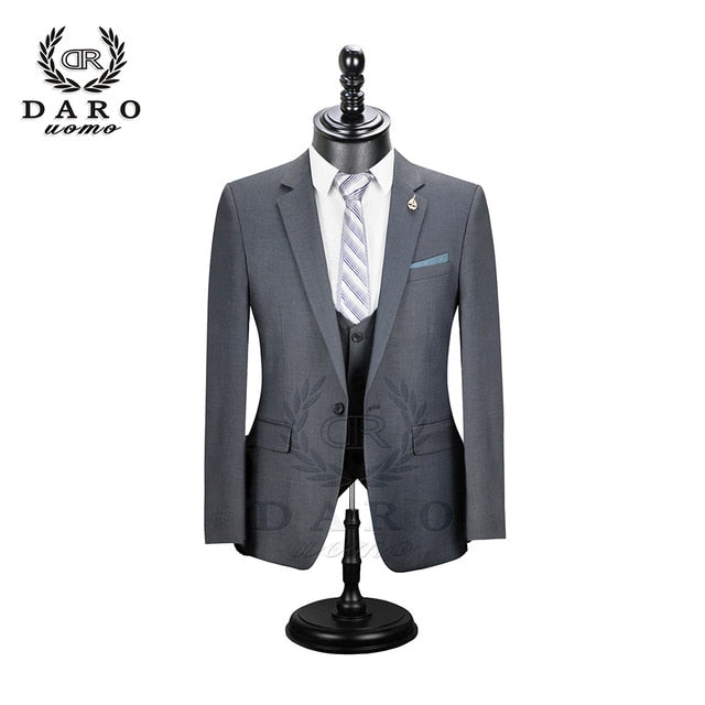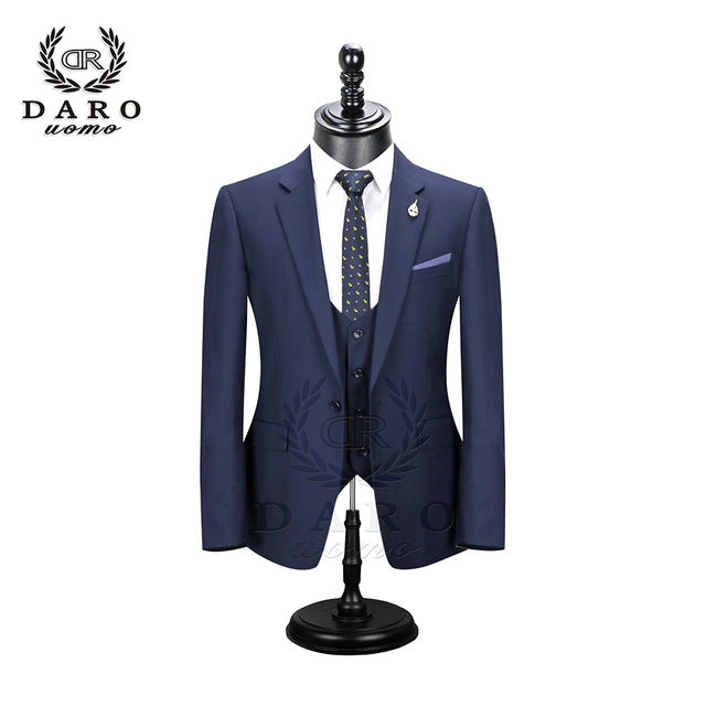 2019 DARO Men Suits Slim Fit Jacket pants vest for Business Work and weeding Wear 3Pcs Set DR6158