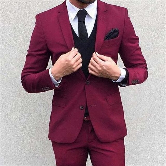 New Brand Groom Tuxedo Suit 2019 Custom Made Wine Red Men Suits Terno Slim Fit Peaked Lapel Groomsmen Men Wedding Prom Suits
